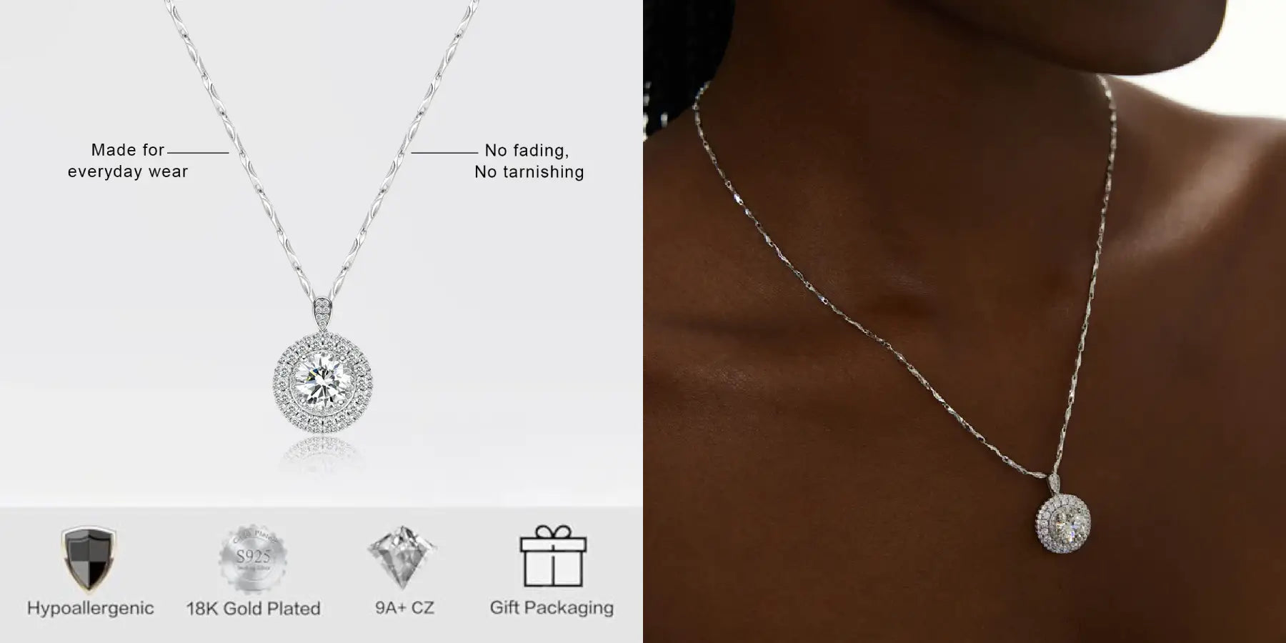 All of our jewelry is crafted from the highest-quality 925 silver plating. This silver plating helps mitigate the darkening and oxidation of silver jewelry, preserving its brilliance for longer.