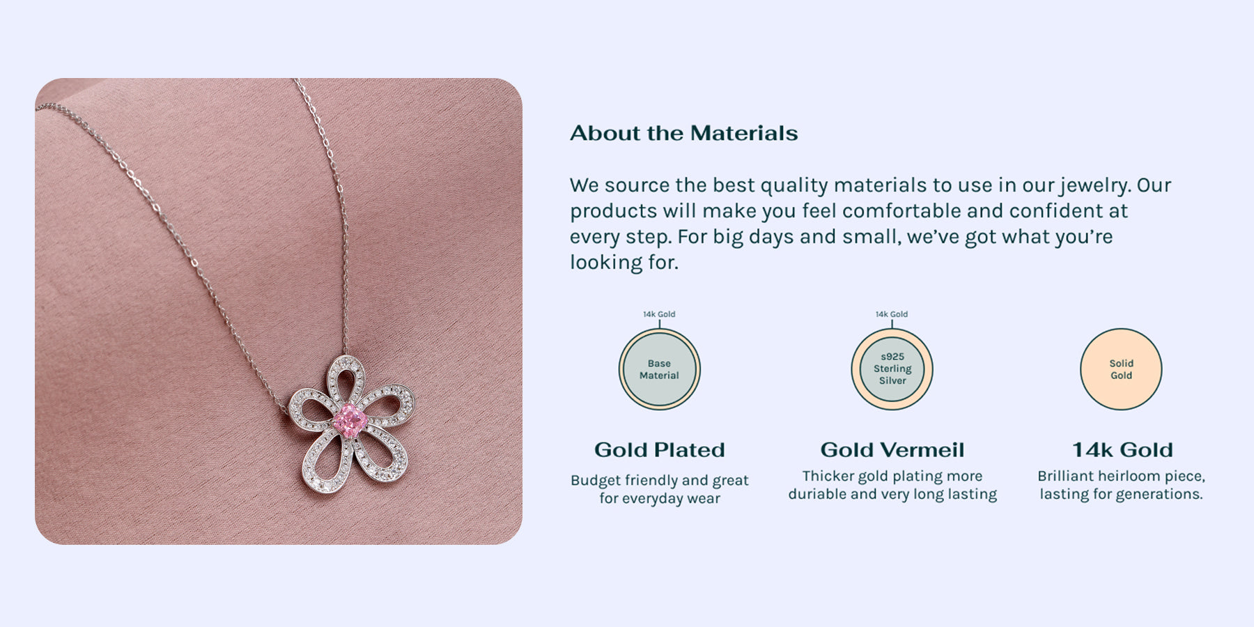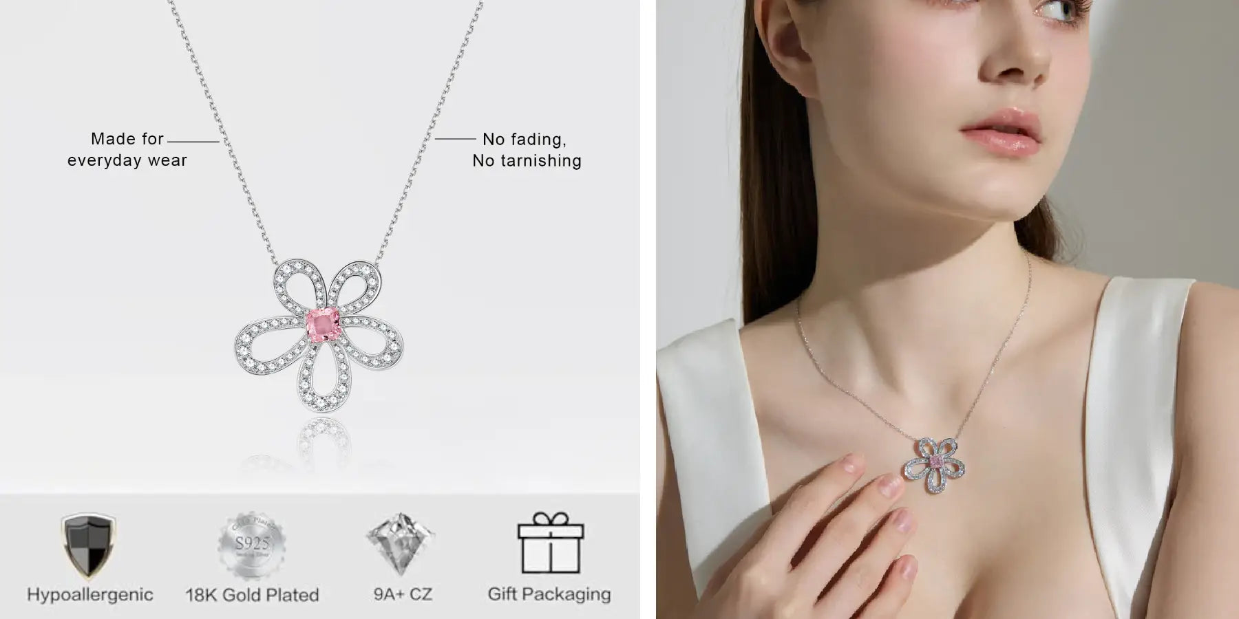 All of our jewelry is crafted from the highest-quality 925 silver plating. This silver plating helps mitigate the darkening and oxidation of silver jewelry, preserving its brilliance for longer.